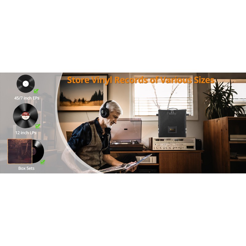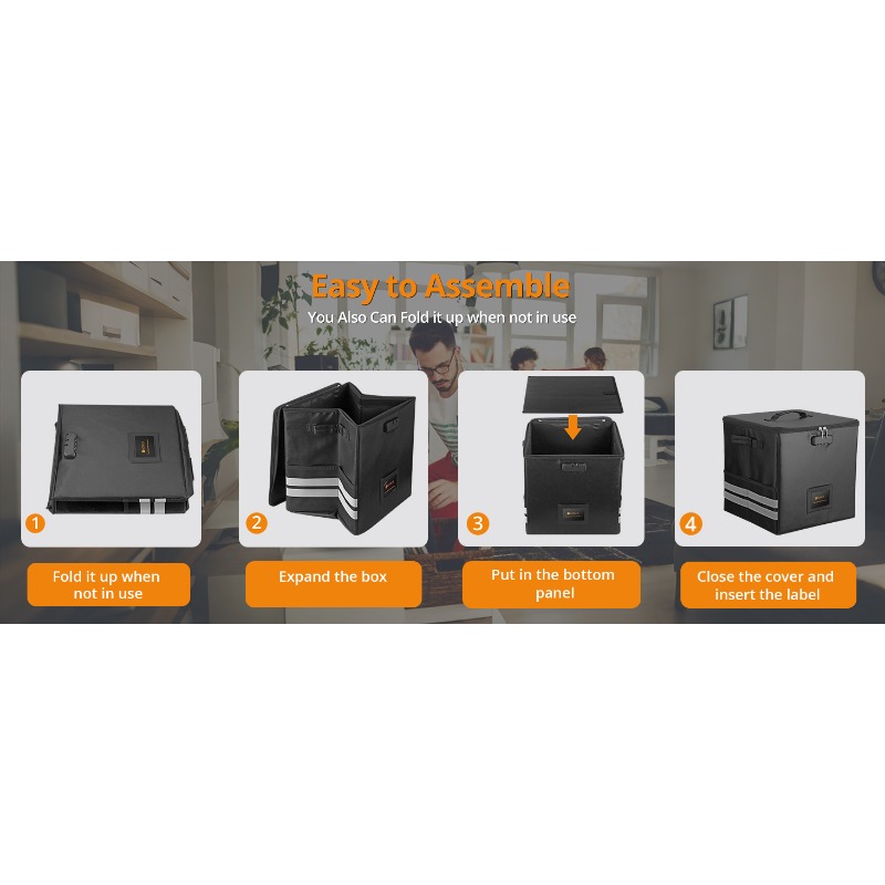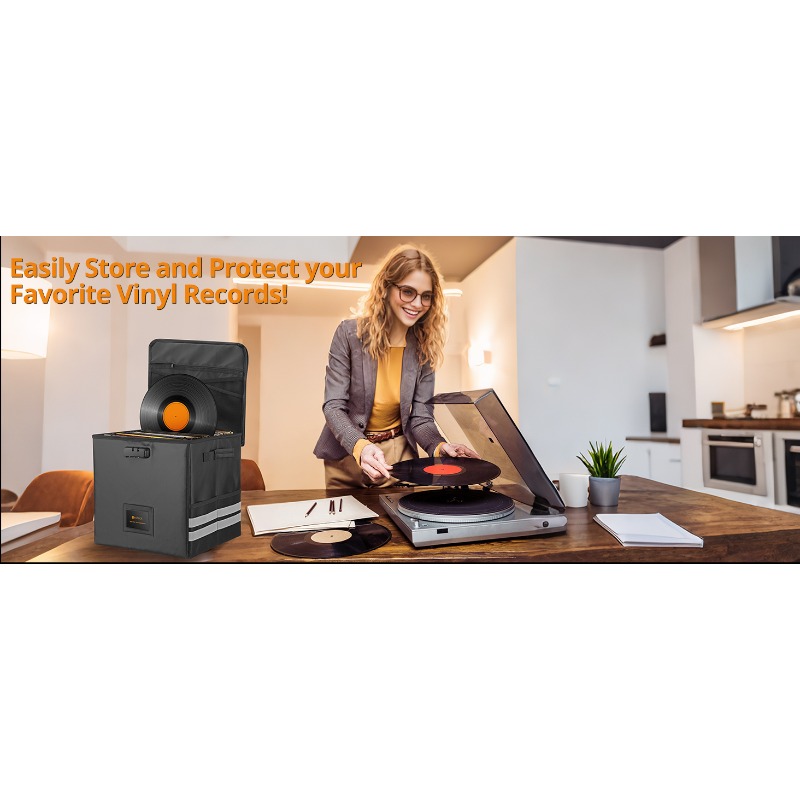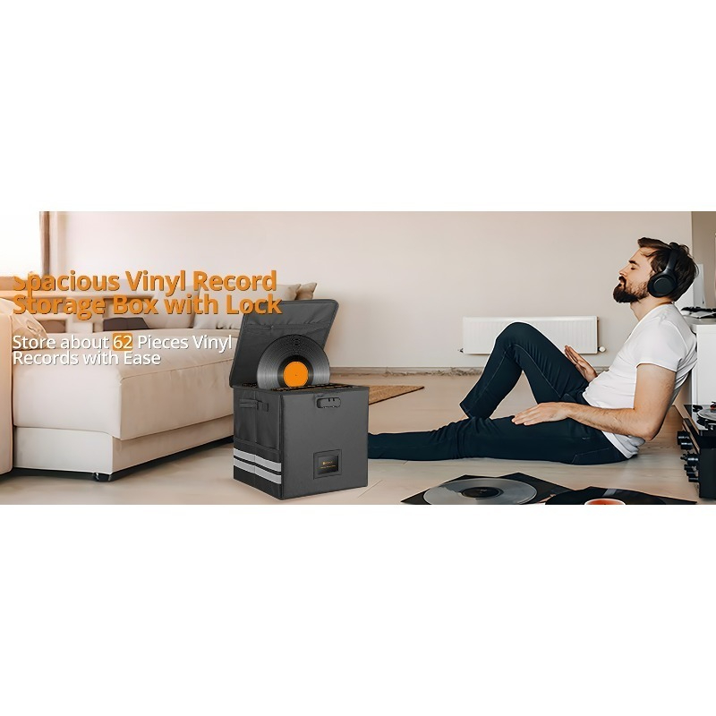 - 62pcs Durable Foldable Vinyl Record Storage Box with Lock | Fire Resistant LP Organizer with Reflective Strips, Plastic Material