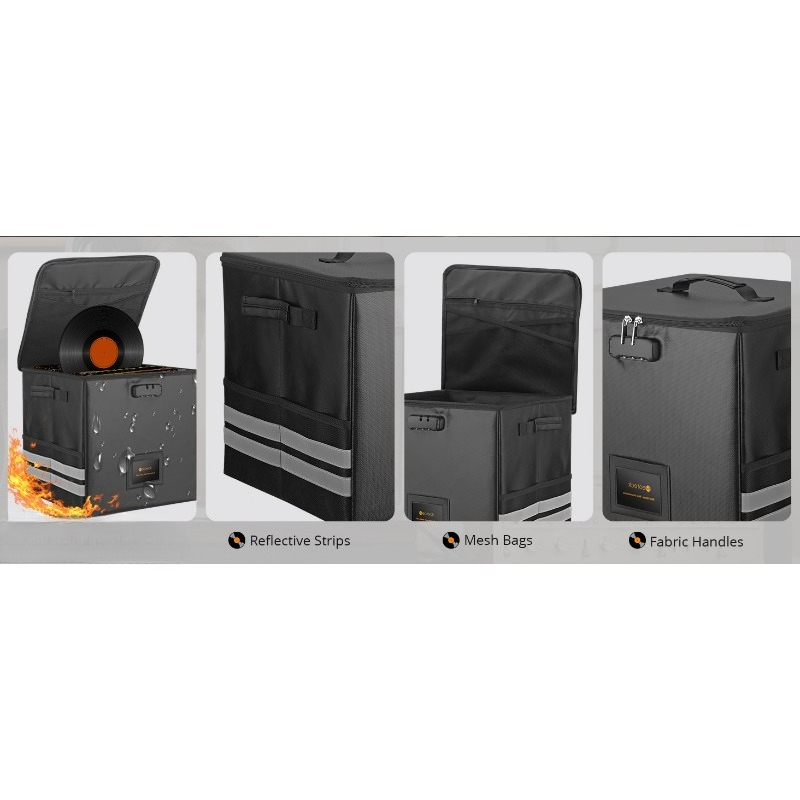 62pcs Foldable LP Organizer - Lockable Fire-Resistant Plastic Box with Reflective Strips -Recordshaven