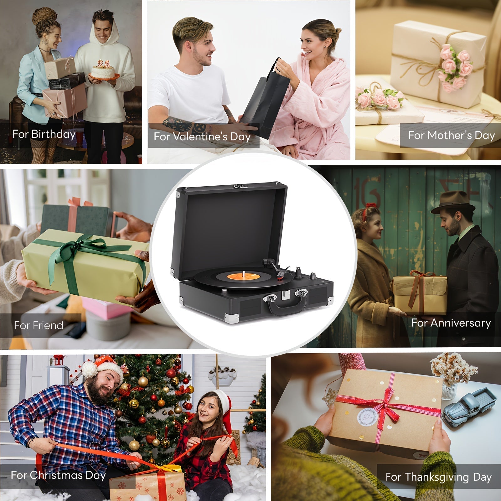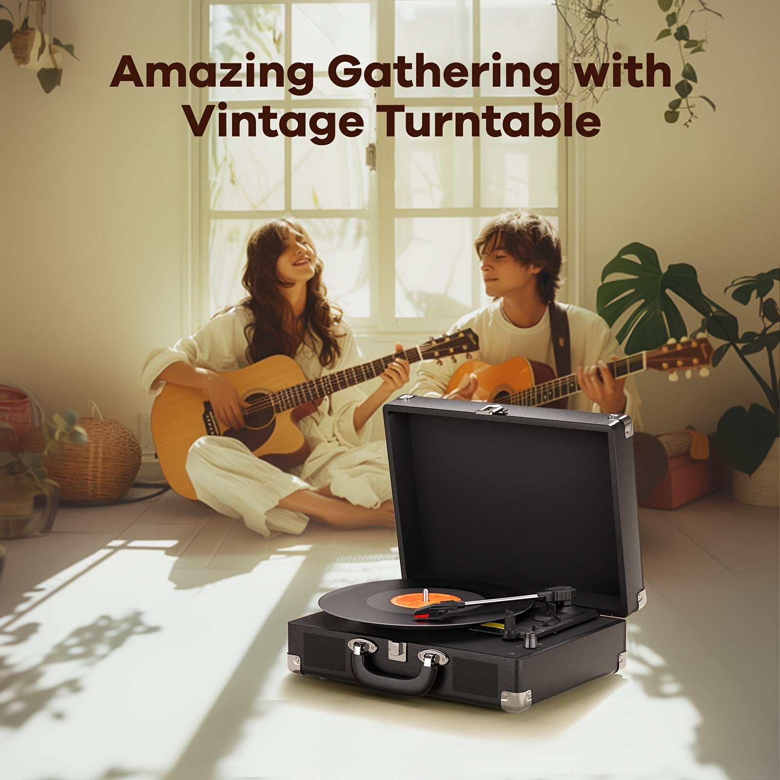 - Maio C210 Vintage Gramophone with Built-in Speaker - Belt-Driven Turntable, 3-Speed (33/45/78 RPM), Wireless Streaming, External Speaker Compatible, Retro Design with Carry Handle - Heavy-Duty Wooden Construction - for Home, Parties