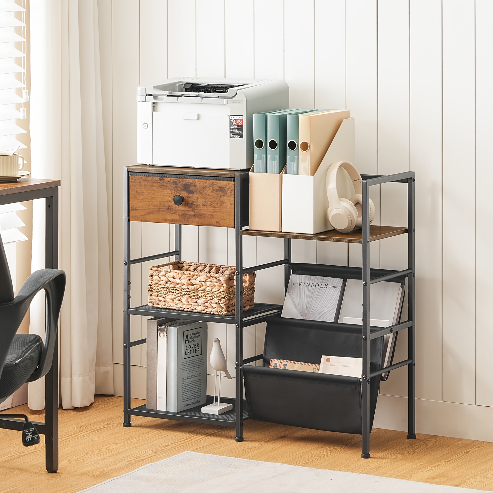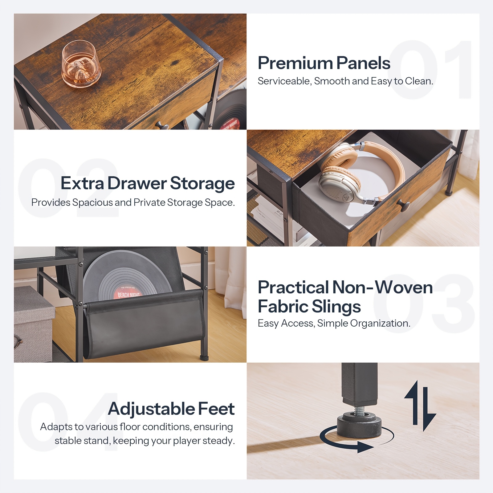 - Vinyl Record Stand, Storage Side Table | Three-tier, 75cm High, Metal Frame, Suitable for Bedroom, Living Room, Study - HOOBRO Brand, Wood Material, Floor Mount, No Electricity Needed, Utility Racks